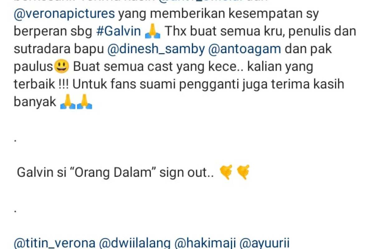 Pemeran Galvin Yaitu Ben Joshua Baru-baru ini mengunggah video perpisahan yang menunjukkan bahwa ia sudah resmi keluar dari sinetron Suami pengganti.