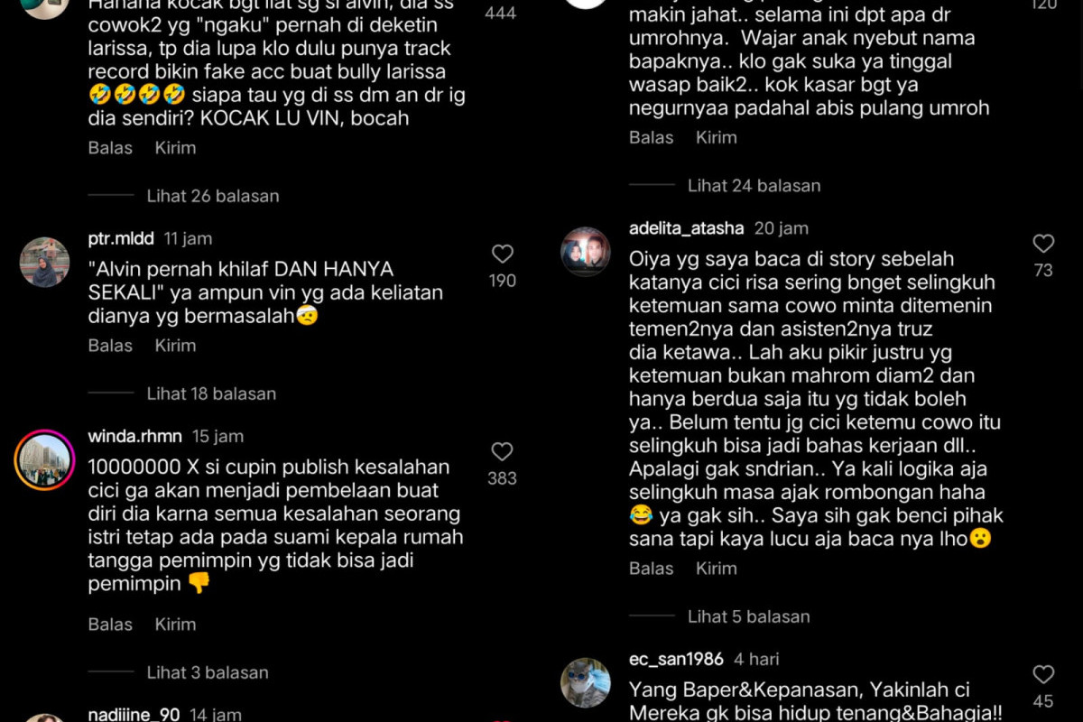 Hingga terhitung ada kurang lebih hampir 3 ribu komentar tanggapan warganet mengenai aksi Alvin di Instagram Larissa pada unggahan terakhirnya.